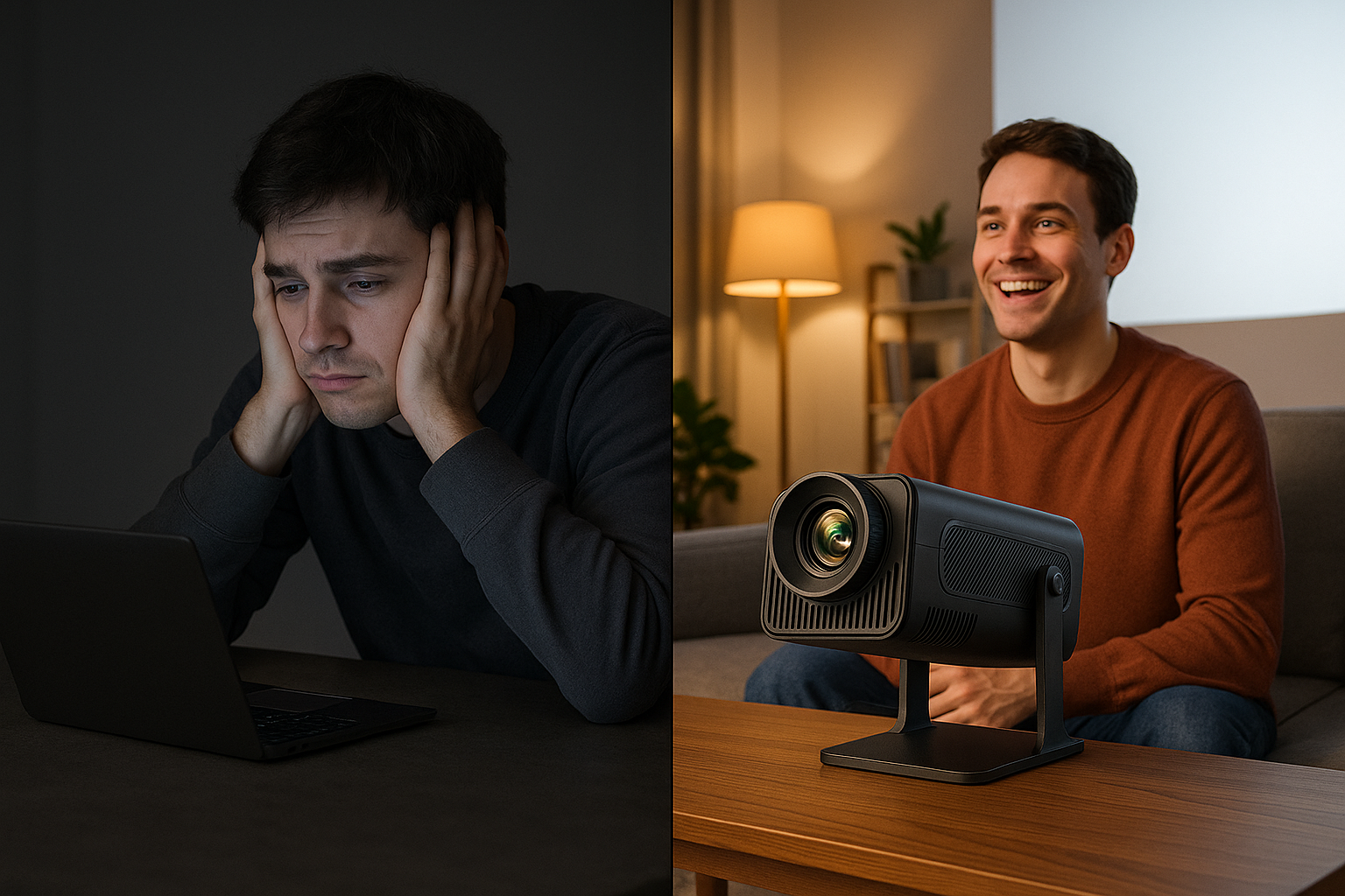 "Volevo una TV per la camera da letto ma costava troppo. Questo proiettore è stata la scelta migliore! Occupa pochissimo spazio e l'immagine è gigante. L'audio è buono, ma collegato alla mia cassa Bluetooth è come stare al cinema. Consigliatissimo!"